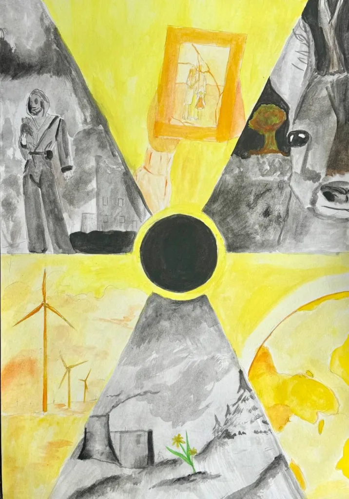 Through colour, symbols, and imagination, they can communicate thoughts that are sometimes difficult to put into words. Their poster for the “NO GLOBAL CHORNOBYL” competition is not just an artwork — it is a message.